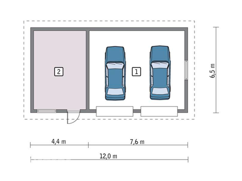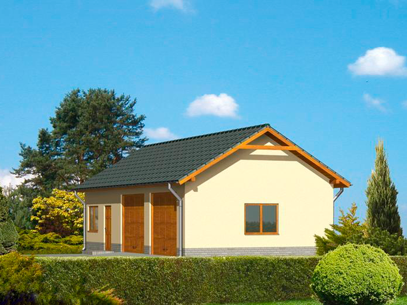 Проект представляет собой функциональный гараж на два автомобиля с дополнительным хозяйственным помещением, выполненный в традиционном стиле. Общая площадь строения составляет 78м2, что обеспечивает достаточно места для парковки и хранения.