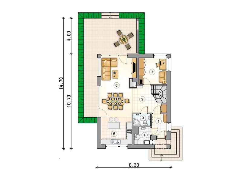 Современный дом, созданный для комфортного проживания семьи из 4-5 человек. Дом привлекает своим стильным дизайном, продуманной планировкой и высоким уровнем функциональности, предлагая уютное пространство для всей семьи.